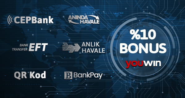 Youwin, yapacağınız her ödeme için 1000 TL’ye kadar nakit kazanma olanağı sağlayarak yatırımlarınızı ödüllendiriyor. Aşağıda sunduğumuz ödeme seçenekleri ile yapılan her ödeme %10 bonus kazandırıyor. Ayrıca Kripto ile yapacağınız min 1000 ₺ yatırımınızla birlikte %15 kripto nakit iade bonusundan yararlanabilirsiniz. Ayrıyeten Youwin kripto yönteminde işlem ücretlerini üyelerine nakit iade olarak geri ödüyor.